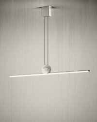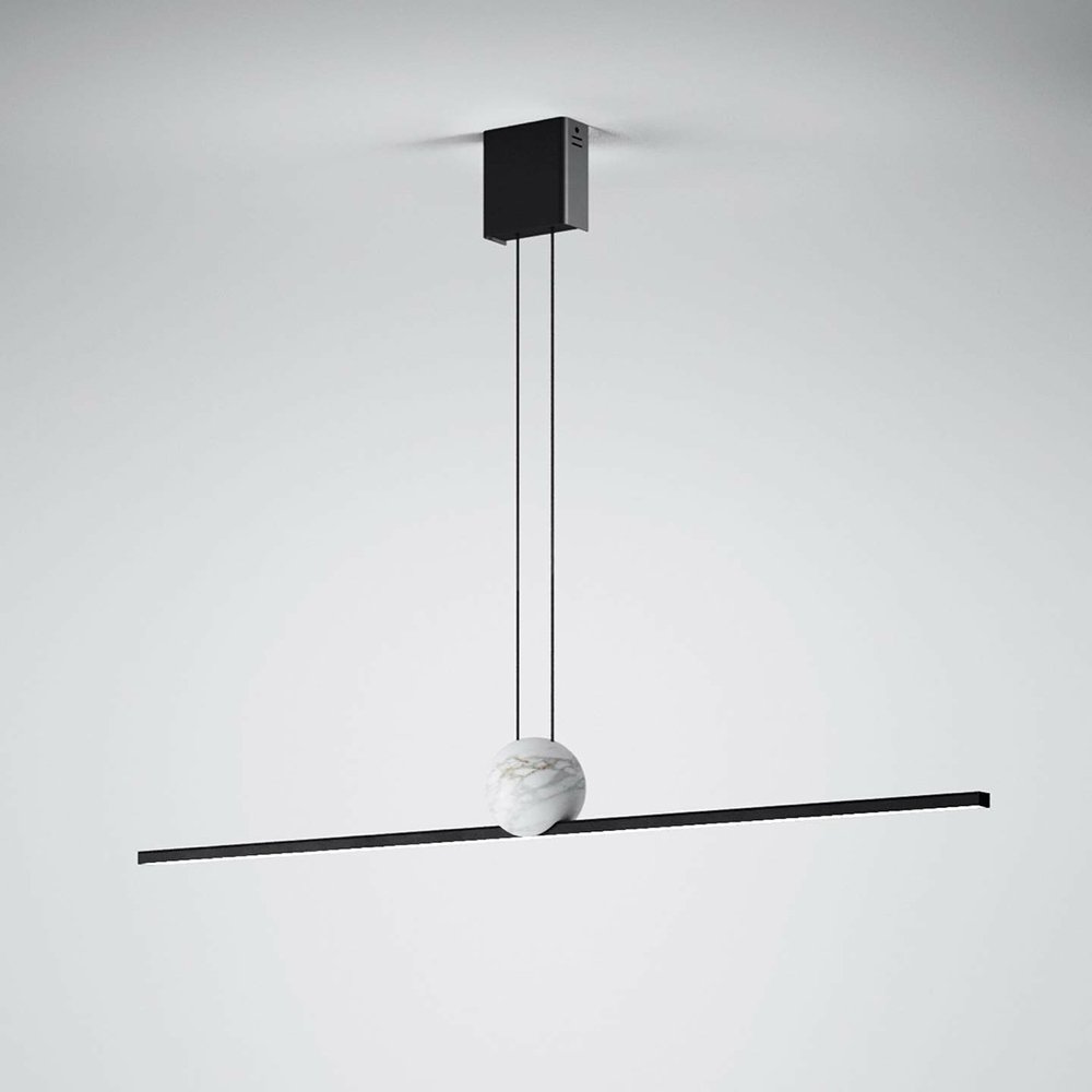 Κρεμαστό φωτιστικό με μεταλλικό προφίλ με διακοσμητική σφαίρα σε χρυσό μάρμαρο Calacatta,  διαθέσιμες παραλλαγές χρωμάτων.