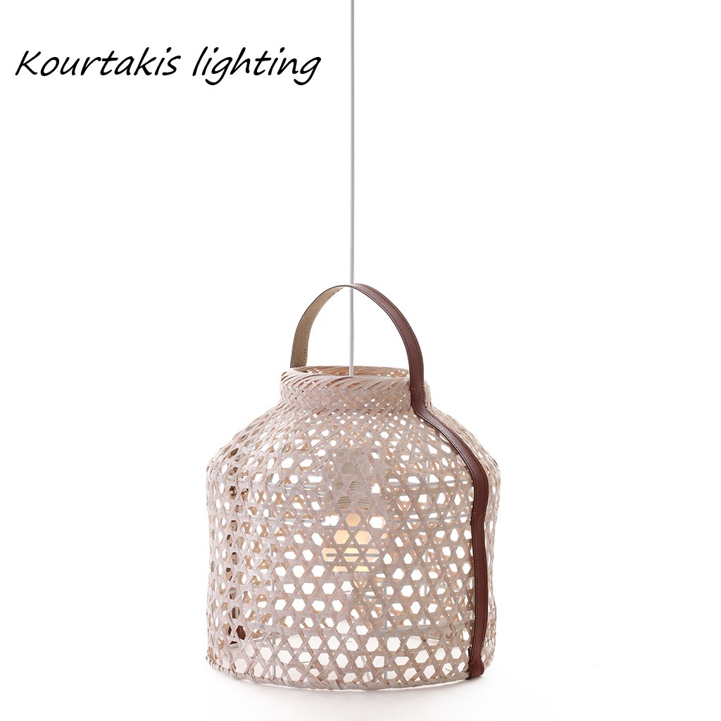 φωτιστικό από μπαμπού διακοσμημένο με δερμάτινα στοιχεία_κρεμαστό μονόφωτο_luma
