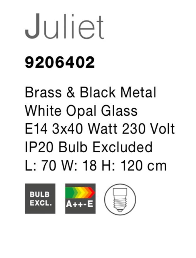 Λαμπτήρες: E 14, 3 x 40Watt  230 Volt – Οι λαμπτήρες δεν περιλαμβάνονται