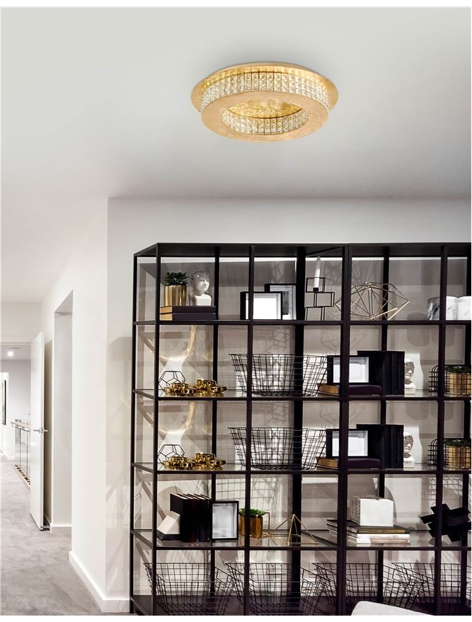 Φωτιστικό οροφής led – κρύσταλλα Κ9 & χρυσαφί αλουμίνιο – Zeffari – Nova Luce