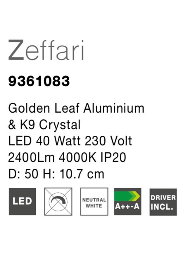 Υλικό: Κρύσταλλα Κ9 και Αλουμίνιο σε απόχρωση χρυσού (golden leaf)